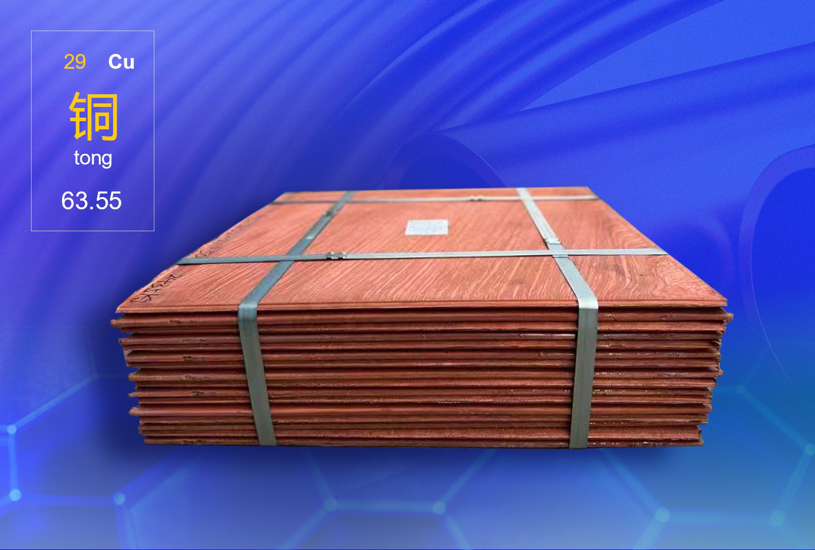 每片重量146±5kg,尺寸為103×105cm,平滑、整齊、美觀。陰極銅產品采用永久不銹鋼陰極電解技術。