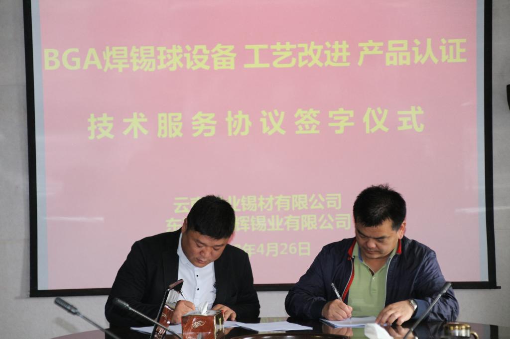 近日,為進(jìn)一步提高錫材公司BGA焊錫球生產(chǎn)技術(shù)和產(chǎn)品質(zhì)量水平,錫材公司與東莞市聯(lián)輝錫業(yè)有限公司簽署技術(shù)合作協(xié)議。