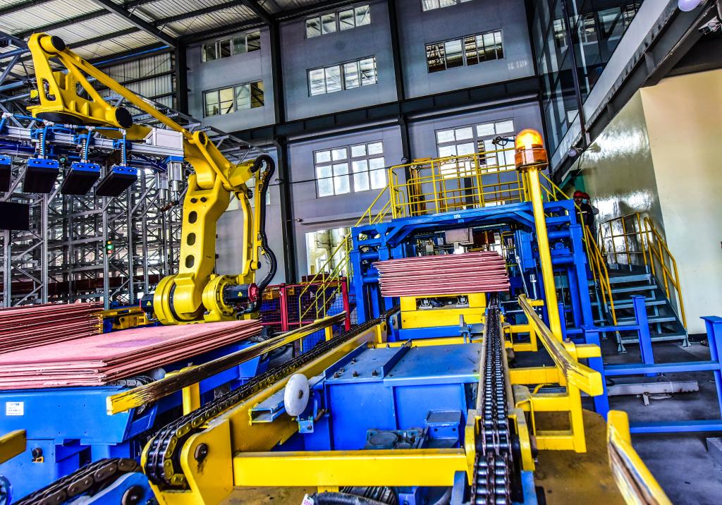 綠色智能發(fā)展取得新成果。以打造“智能”工廠,推進“數(shù)字云錫”建設(shè)為契機,強化綠色智能補鏈、改革創(chuàng)新強鏈作用,深入探索5G工業(yè)應(yīng)用,5G智能倉儲系統(tǒng)已順利拉通全部流程,實現(xiàn)了“無人銅電解車間”的完美轉(zhuǎn)型。